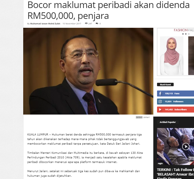 Financial advisers can be charged under the Personal Data Protection Act 2010 (Act 709).