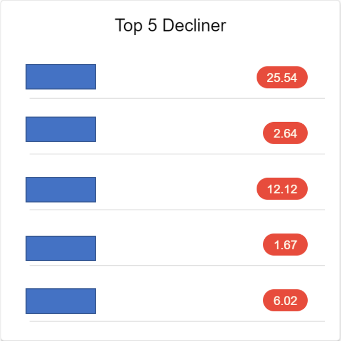 Top Decliner atau top loser pula merujuk kepada kaunter saham yang mengalami penurunan harga berbanding harga closing semalam.