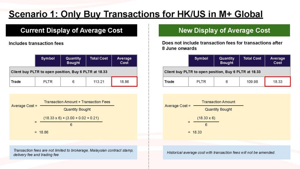 This is an explanation of the average cost displayed in Mplus Global for buying and selling US or HK stocks.