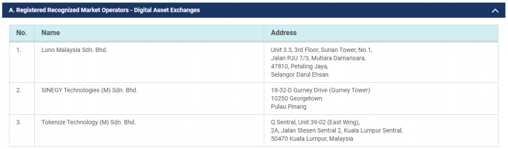 Kemudian dekat website tu korang boleh search untuk list of registered digital asset exchanges