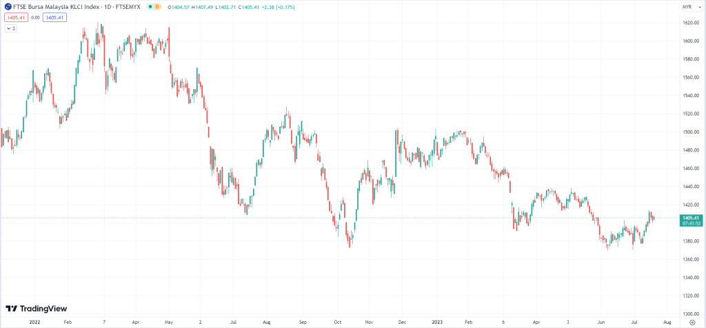 Untuk kaedah pertama macam mana nak tahu pasaran tengah ok atau tidak, boleh tengok di chart KLCI. KLCI ni boleh dikatakan menjadi penanda aras prestasi keseluruhan pasaran Bursa Malaysia.