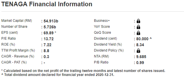 Jika rujuk PE Ratio saham TENAGA menunjukkan 13.72.