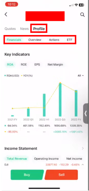 Ya, anda boleh melihat data kewangan syarikat di bahagian Profile dalam platform Mplus Global. Terdapat empat pilihan data iaitu Financial, Overview, Actions dan ETF.