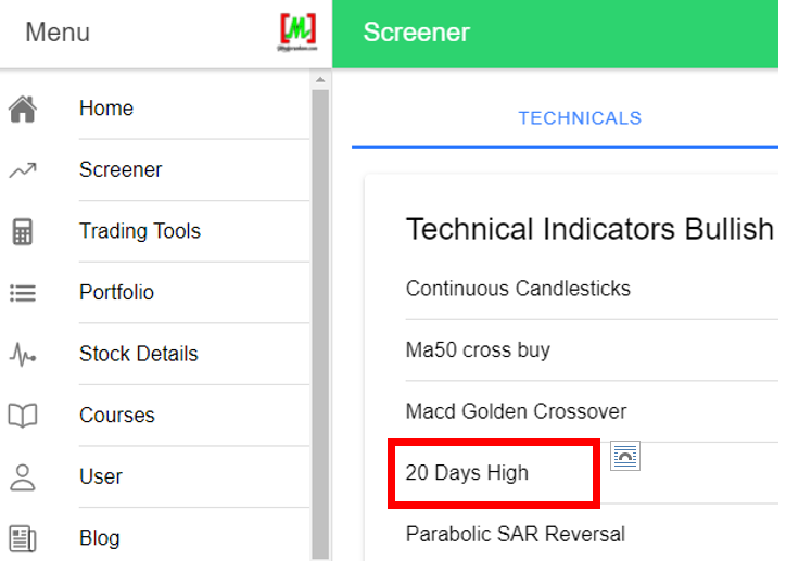 Korang cari screener 20 days high.