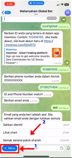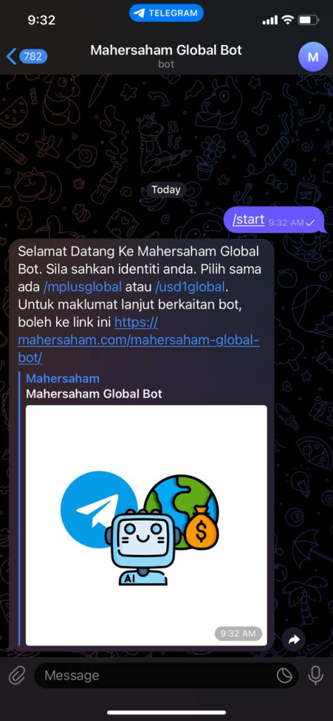 Antara kelebihan mendaftar akaun Saham Global Mplus melalui saya (Maher Alias) sebagai introducer ialah dapat akses ke Mahersaham Global Bot. Boleh saya katakan Mahersaham Global Bot ini sangat powerful kerana anda tidak perlu ‘download’ dan ‘install’ apa-apa app untuk menggunakannya.