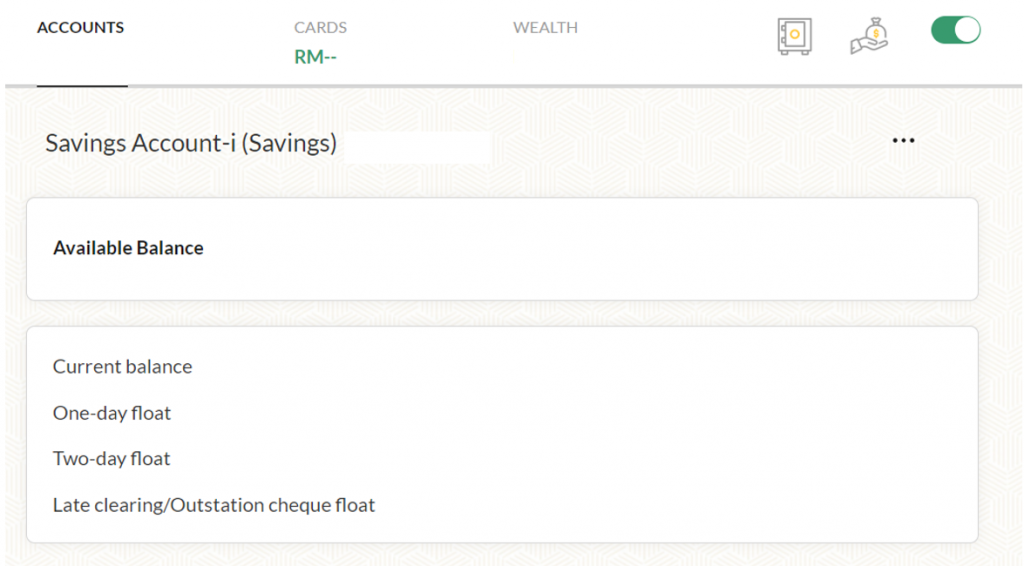 Selepas dah tekan view details anda akan dibawa ke dashboard akaun bank dengan senarai akaun di bawah anda.