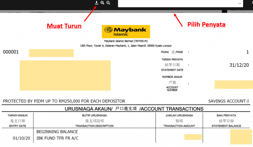 Korang boleh download penyata bank jika ia mematuhi maklumat yang diperlukan di atas.