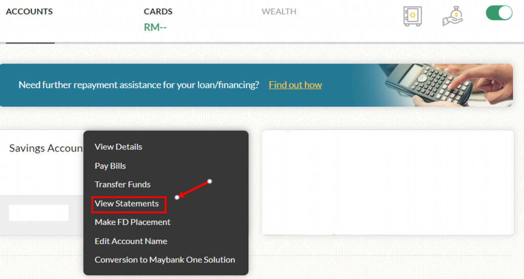 Untuk mendapatkan penyata bank Maybank, korang boleh ikut cara-cara di bawah: