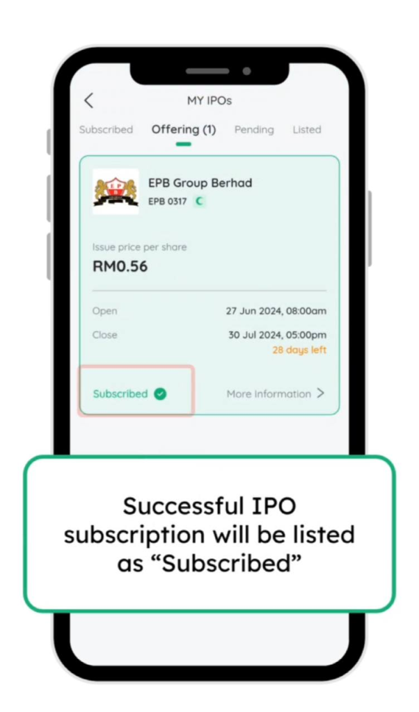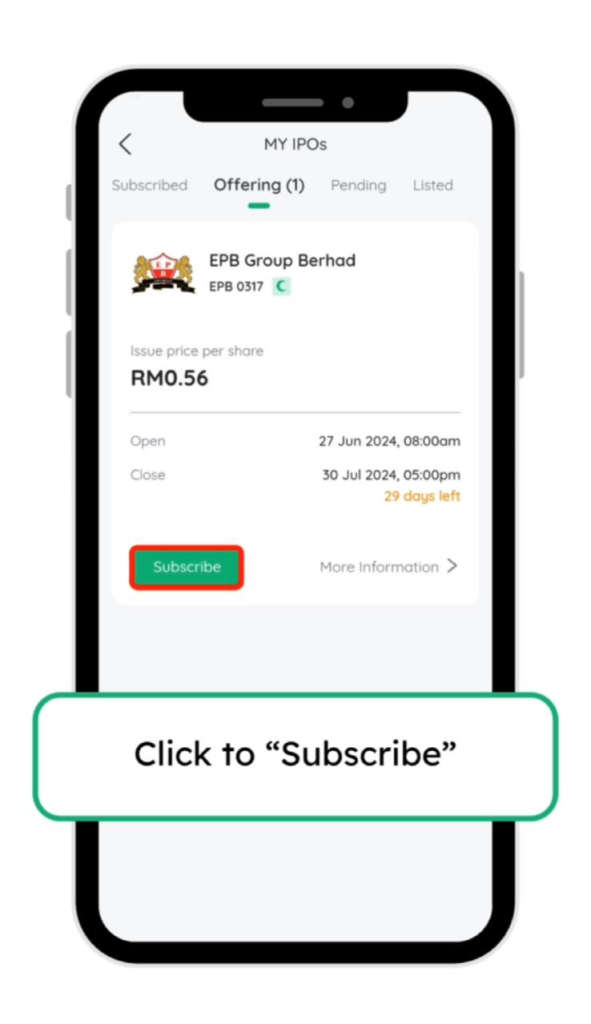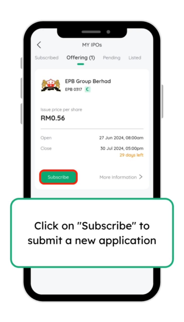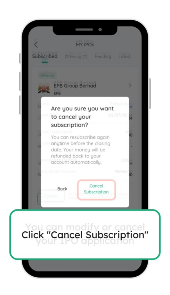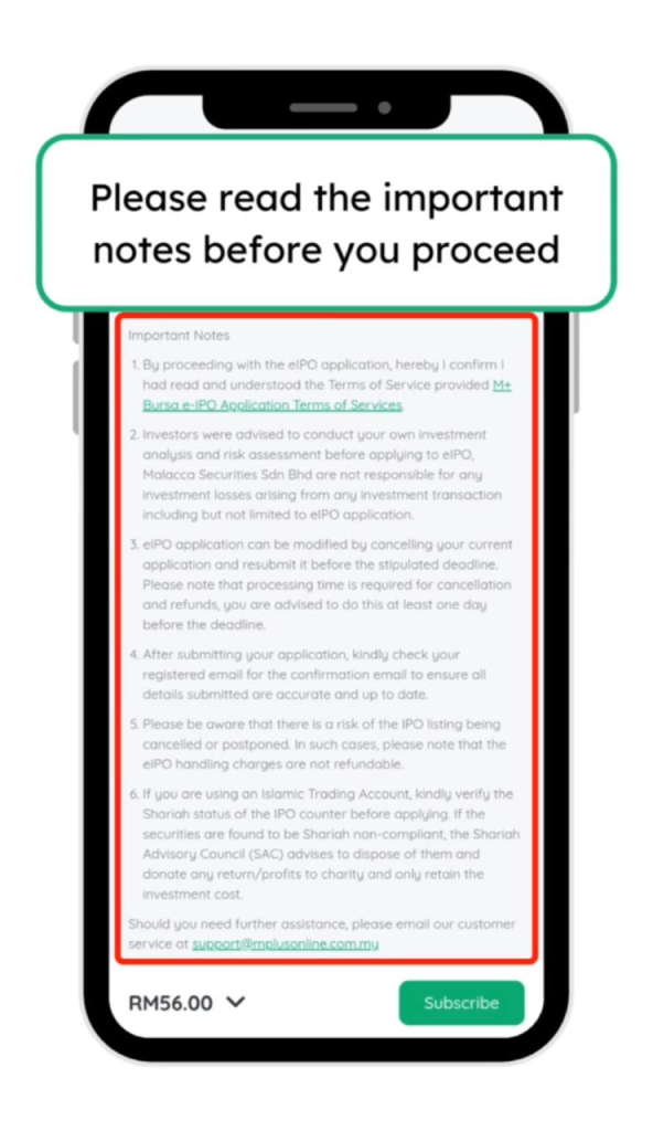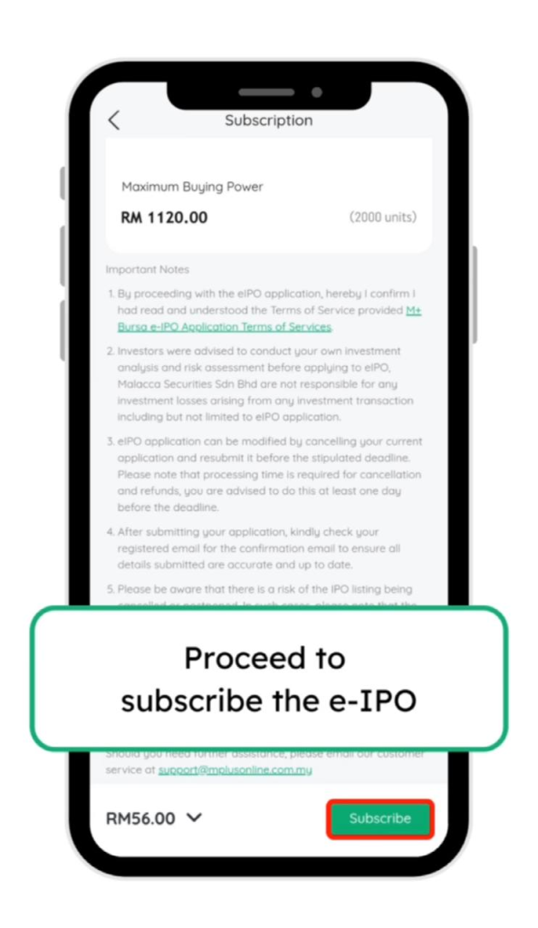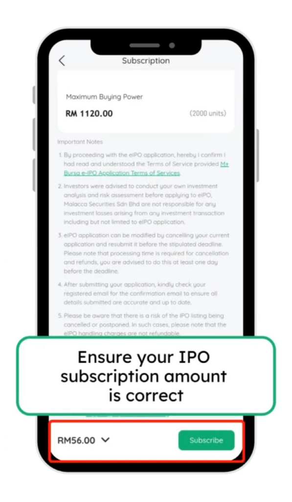 23. Tekan subscribe dan ulang seperti langkah sebelum ini untuk memohon IPO