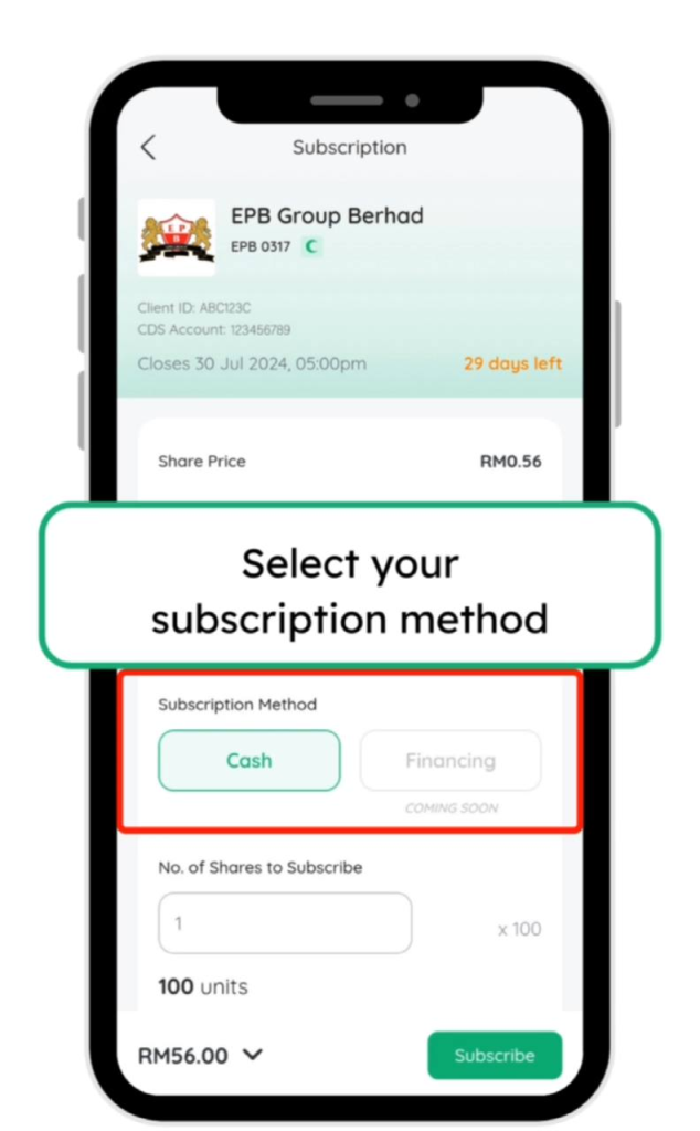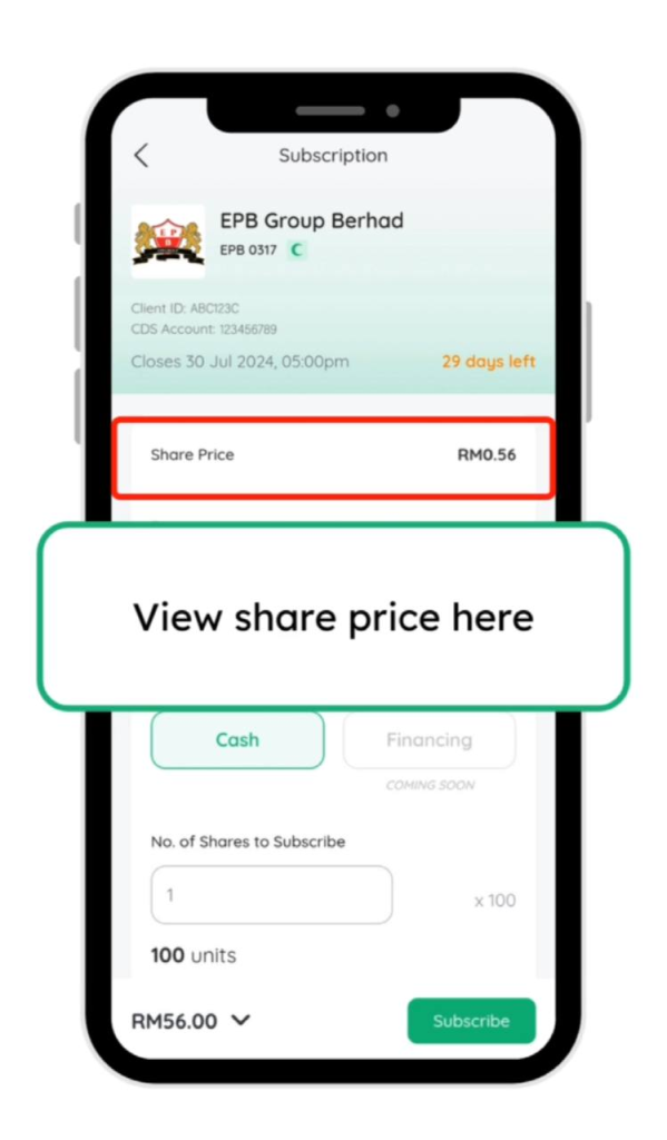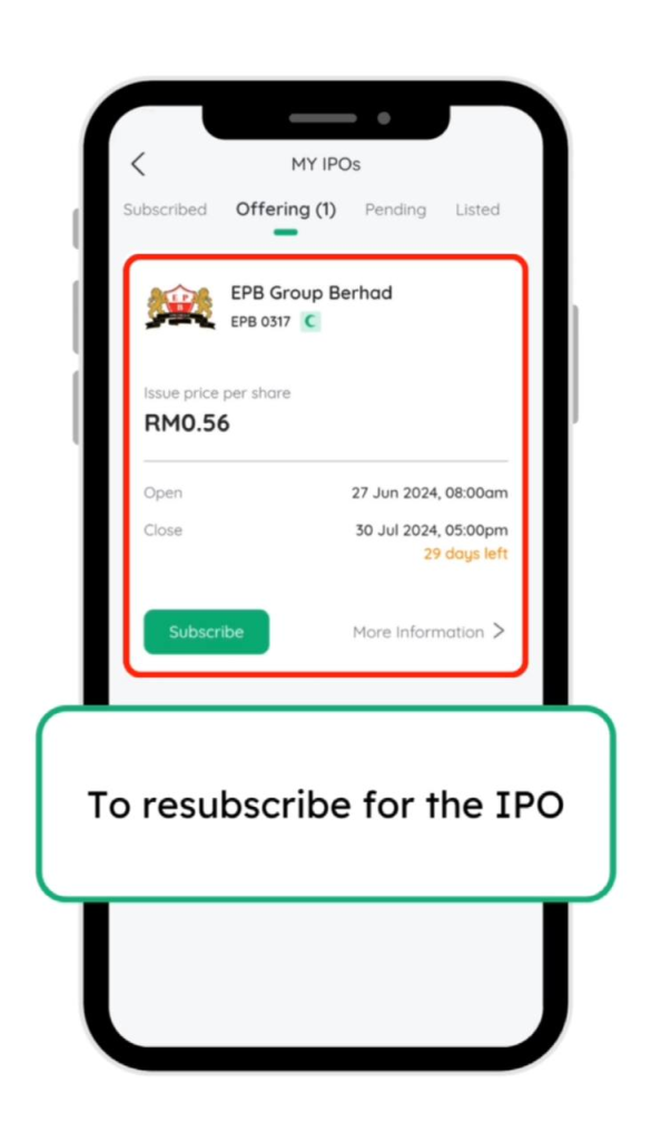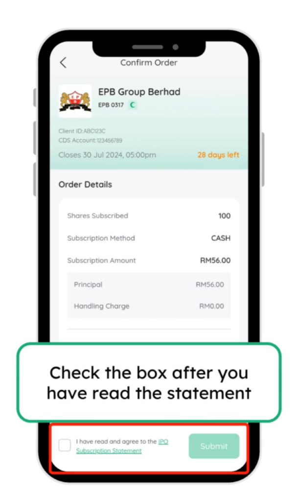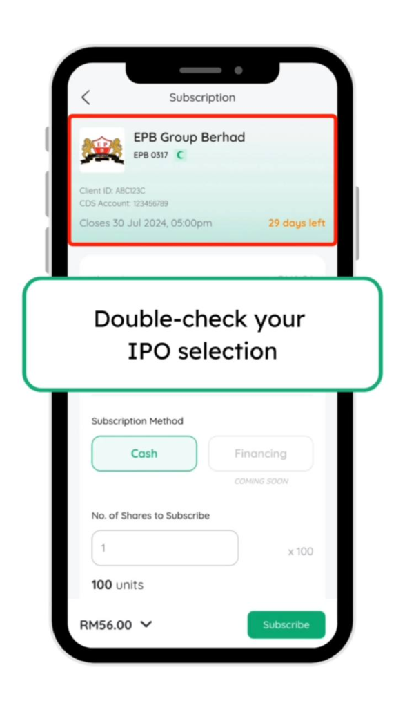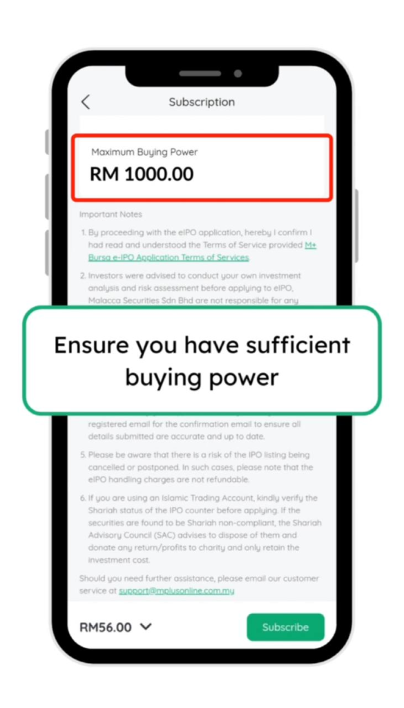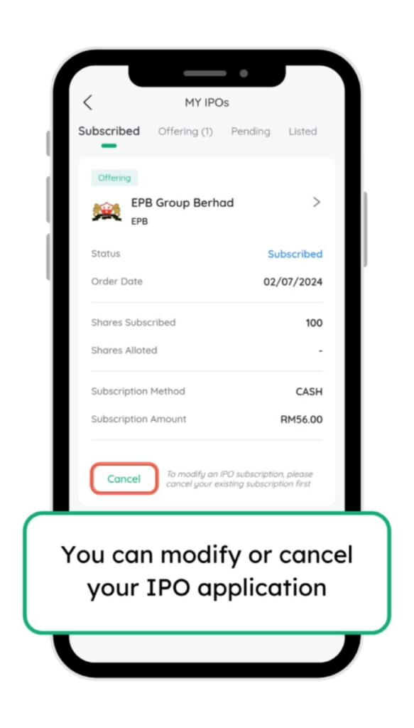 23. Tekan subscribe dan ulang seperti langkah sebelum ini untuk memohon IPO