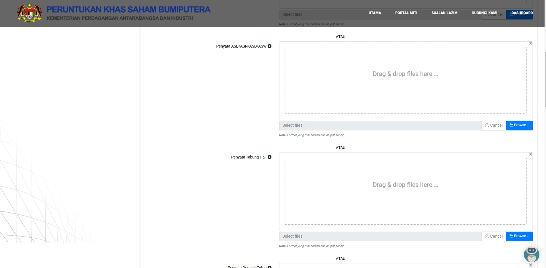 Wajib upload salah satu. Jika tiada yang lain mesti upload penyata bank anda. Ini diperlukan oleh pihak MITI