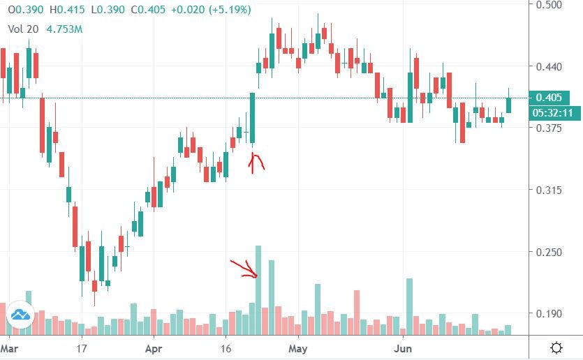 Untuk tahu bila mana adanya volume pembelian yang besar adalah dengan melihat pada bar hijau seperti dalam rajah.