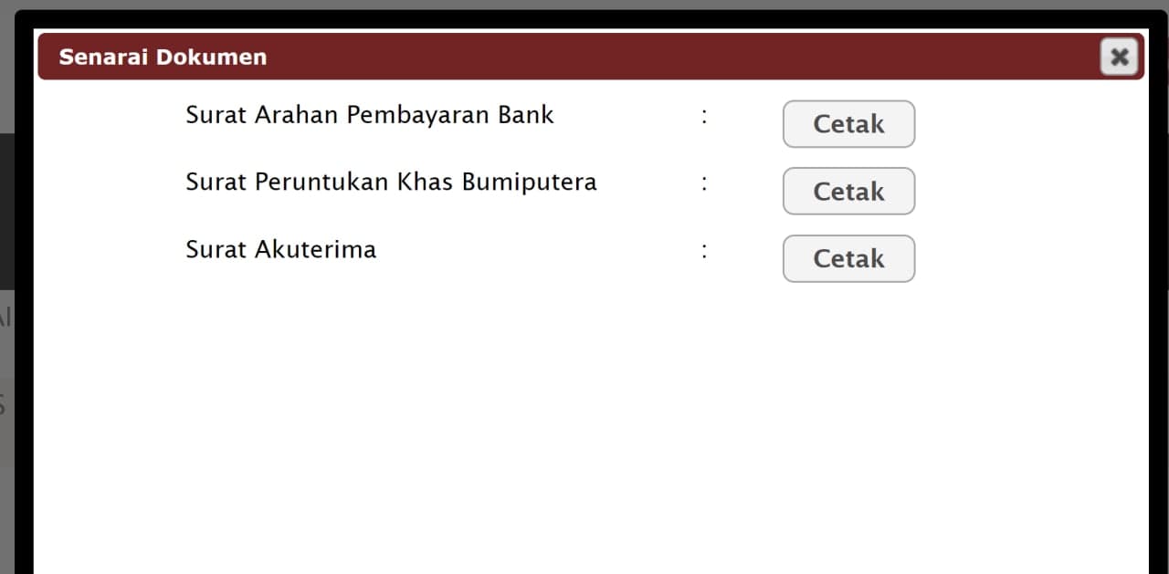 Bila anda klik terima akan keluar senarai dokumen yang anda perlu sediakan dan pembayaran yang perlu dilakukan.