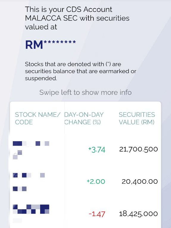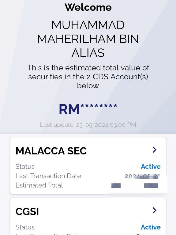 1. The main screen will show a list of CDS accounts you have with brokers in Malaysia
