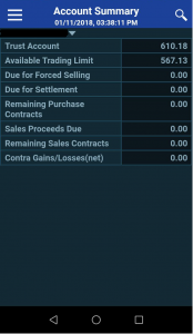 Akaun Summary akan menunjukkan maklumat mengenai jumlah modal wang ada dalam akaun trading anda dan berapa amaun maksima yang anda boleh gunakan untuk pembelian saham.