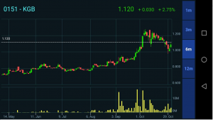 Jika anda berada diluar dan tidak mempunyai komputer untuk melihat chart platform, aplikasi ini turut mempunyai kemudahan candlestick chart untuk anda melihat pergerakan harga saham dengan pilihan time frame 1m, 3m, 6m dan 12m.