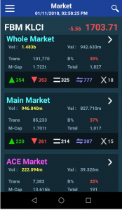Maklumat keseluruhan papan FBM KLCI utama iaitu Main Market, ACE Market dan LEAP Market akan dikemaskini secara real time basis sepanjang waktu pasaran dibuka dari jam 9 pagi hingga 5 petang.