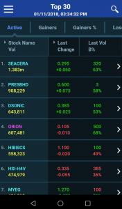 Top 30 Counters akan menunjukkan kesemua 30 kaunter teratas untuk hari tersebut dari sudut active, gainers, gainers%, losers dan losers %. Sebelum ini ia hanya memaparkan to 10 kaunter sahaja.