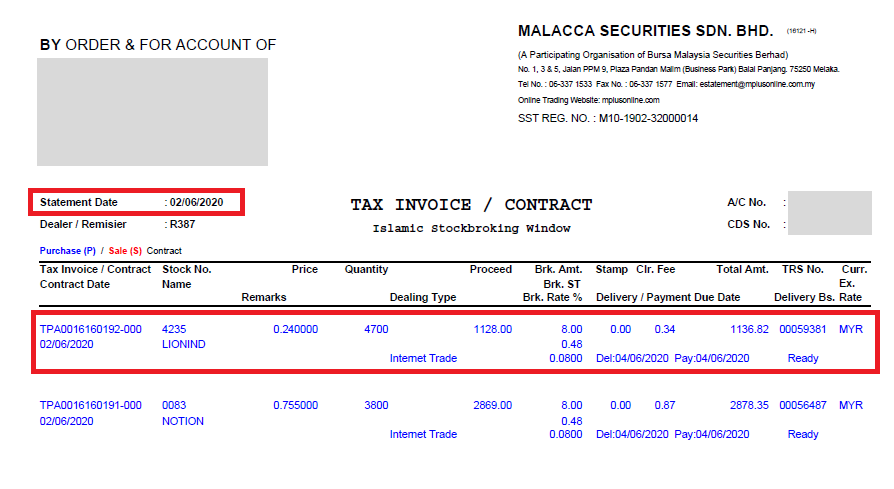 So the contract note is the place for us to know our completed buy and sell transactions.