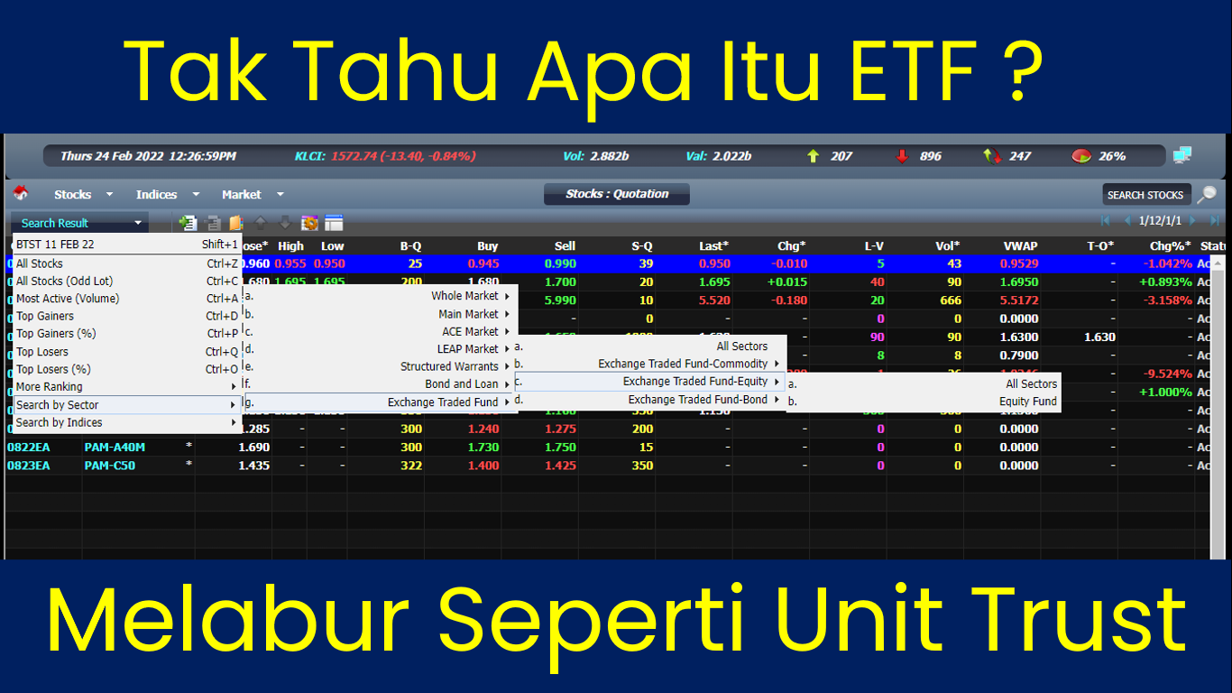 In simple terms, an ETF is essentially a 'Unit Trust' that is traded through the Bursa Malaysia stock trading platform.