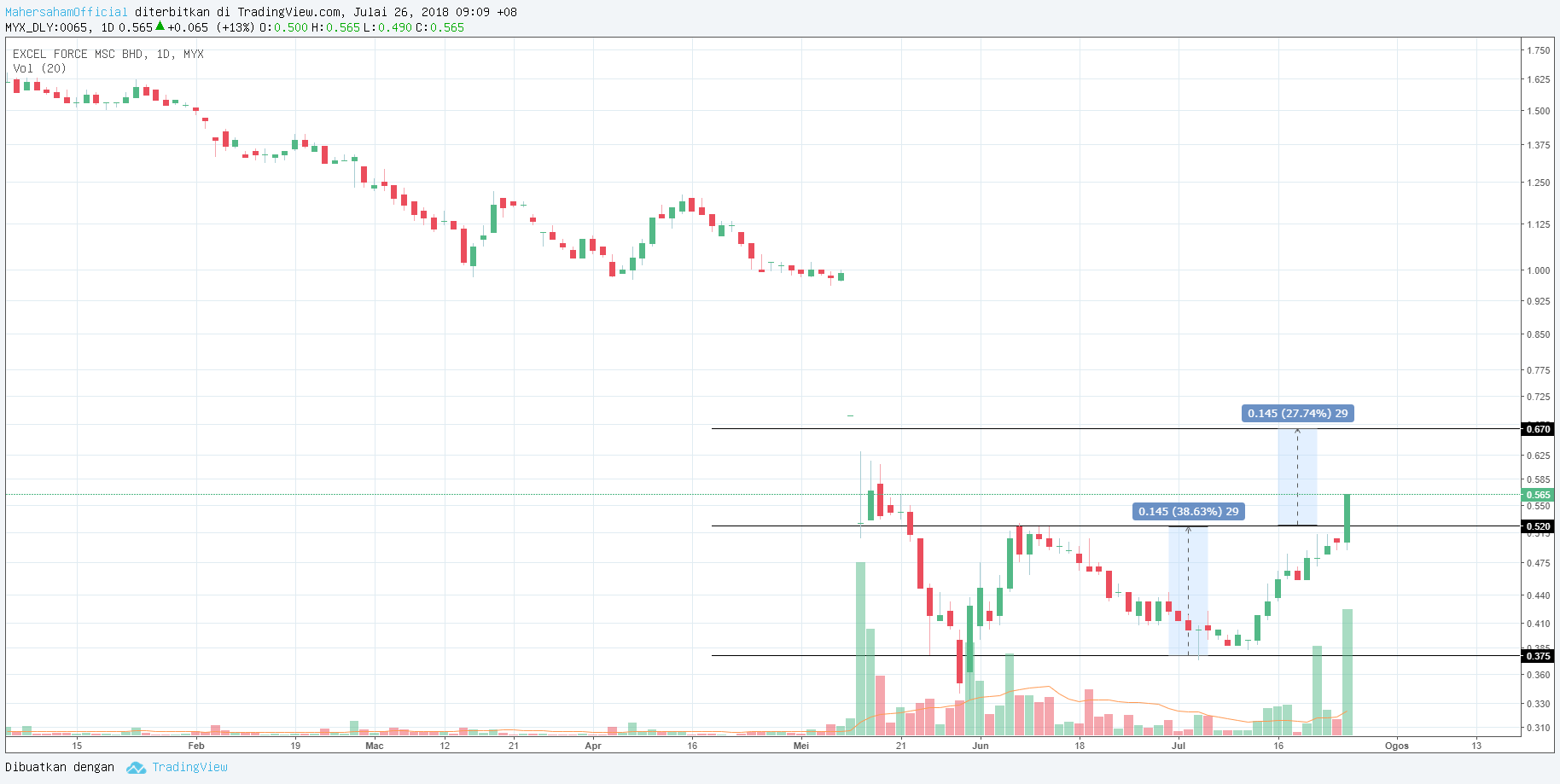 Excelforce memecah rintangan by MahersahamOfficial on TradingView.com