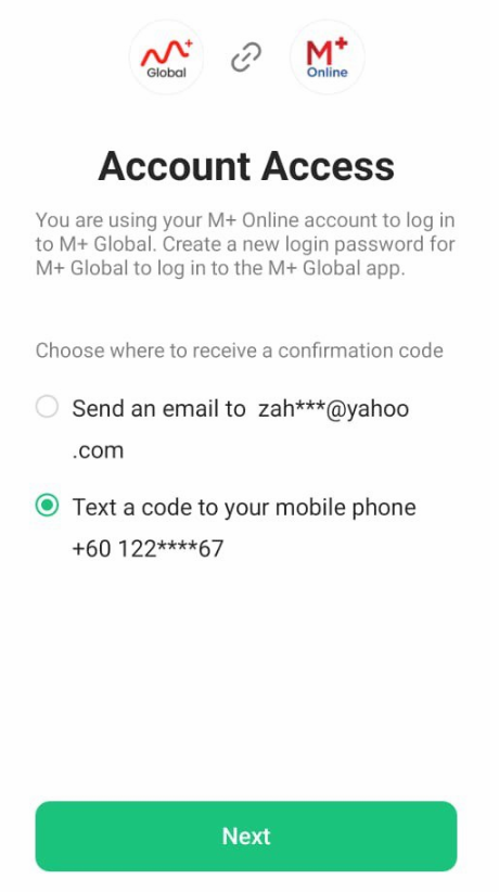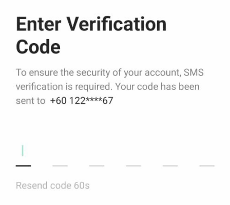 6. Mplus akan hantar ‘verification code’ ke nombor telefon anda. Masukkan code tersebut dan tekan ‘next’