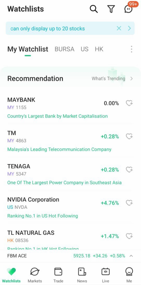 M+ Global membolehkan anda berdagang di pasaran Bursa Malaysia dan pasaran global dalam satu aplikasi. Anda juga boleh memohon IPO terus melalui aplikasi ini.