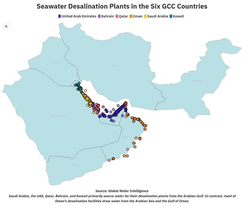 Arab Saudi sahaja ada lebih 30 kilang nyahraman besar yang beroperasi sepanjang pantai Laut Merah dan Teluk Parsi. UAE, Qatar, Kuwait — semua dalam kategori yang sama.
