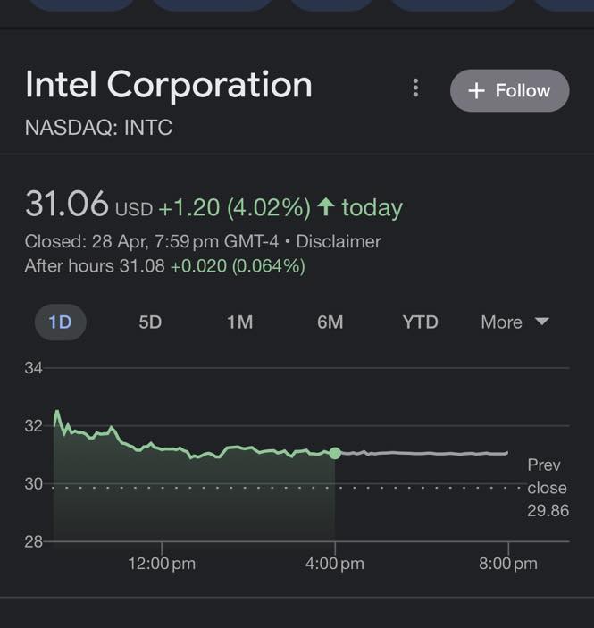 Walau bagaimanapun harga saham Intel melonjak 4% semalam. Kenapa ini berlaku?