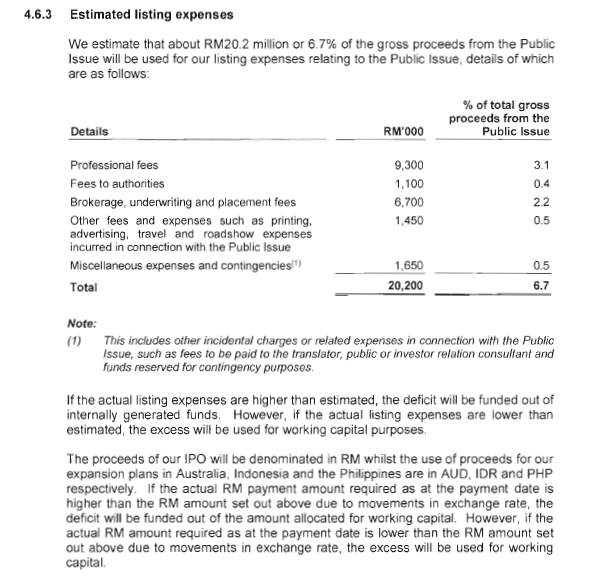 Berdasarkan pembacaan dari Prospectus sebanyak RM301 JUTA diperlukan untuk :