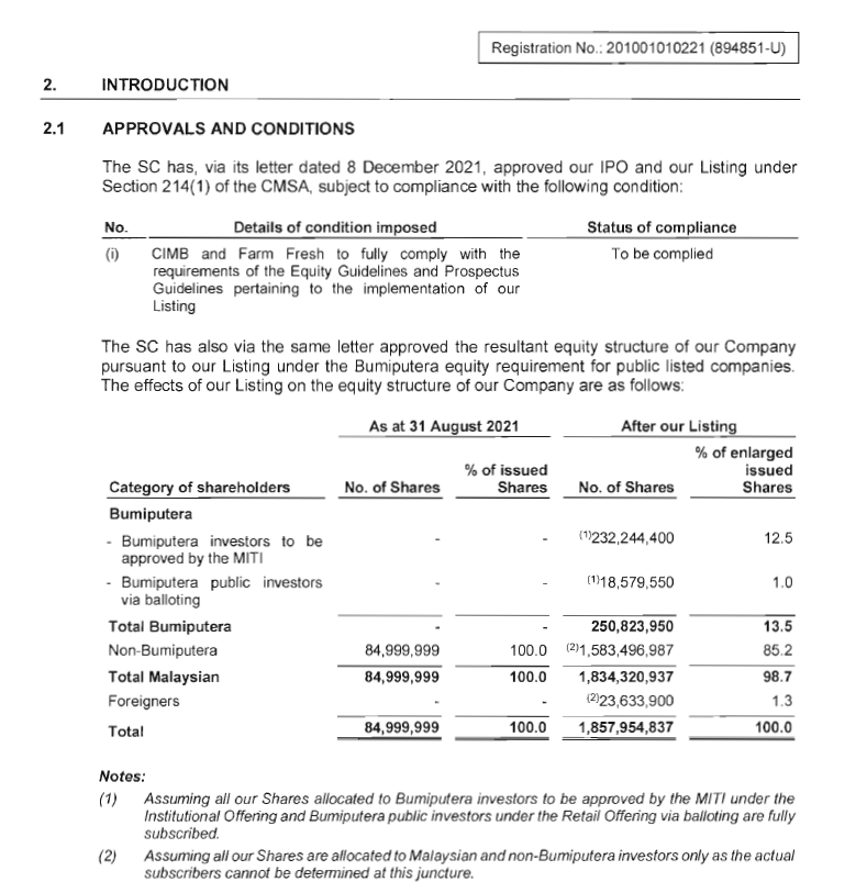 IPO FARM FRESH BERHAD – Detail Tawaran Awam