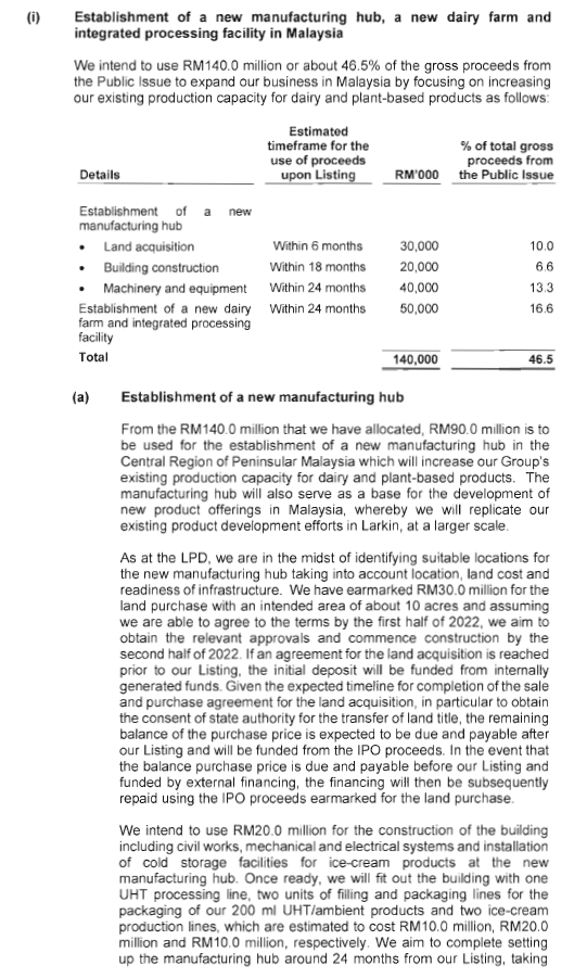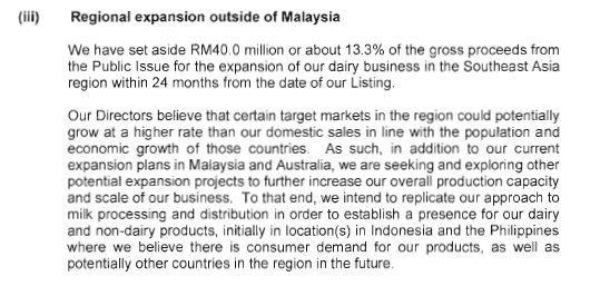 – Penubuhan hab pembuatan yang baru, ladang tenusu yang baru dan bersepadu kemudahan pemprosesan di Malaysia