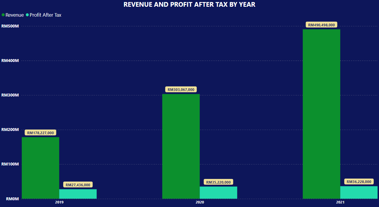 Kemudian dari Financial Information diatas, selain revenue kita boleh lihat juga PAT (rujuk Profit for the financial year) pada tahun 2021 iaitu sebanyak 36,228,000