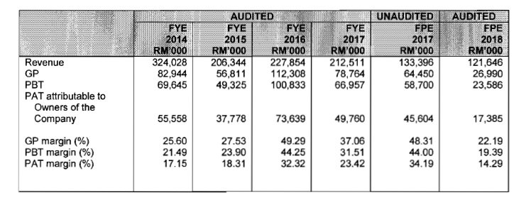 Dibawah ini adalah gambar rajah ringkasan financial information untuk 2014 sehingga 2018