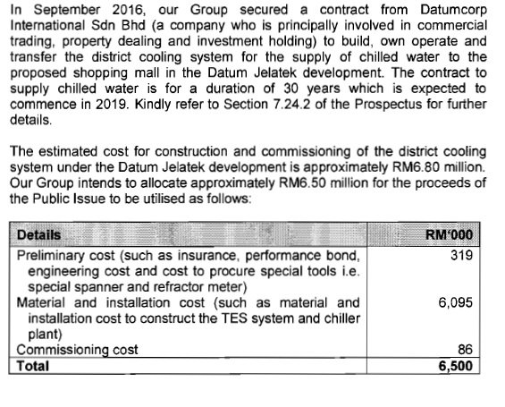 2. Capital expenditures for the district cooling system for the supply of chilled water to a shopping mall under the Datum Jelatek Development