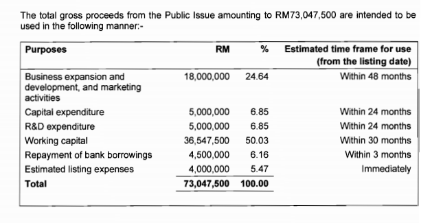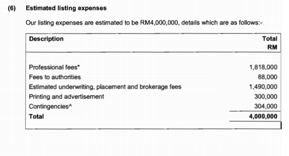 Lisitng Expenses: 5.47% iaitu sebanyak RM4JUTA