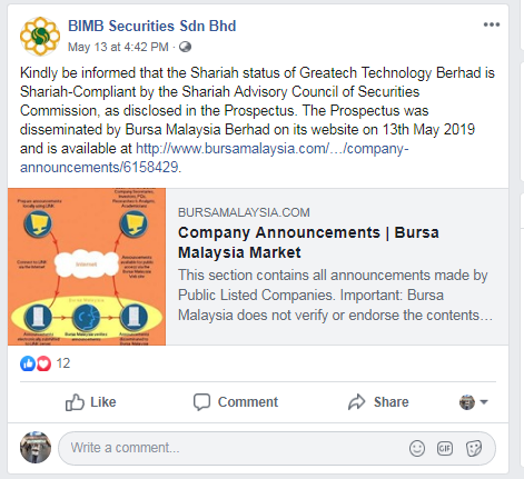 Bagi muslim status syariah sangat penting dalam menjaga harta kita. Untuk IPO Greatech Technology Berhad ini ia berstatus syariah.