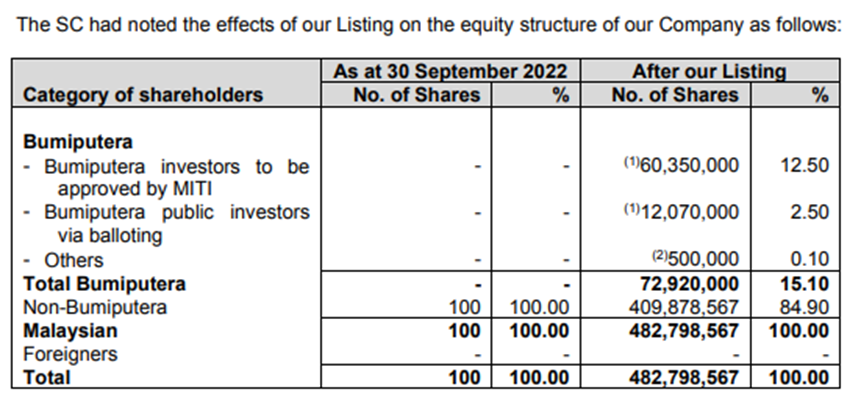 Berikut merupakan struktur syarikat selepas IPO dijalankan.