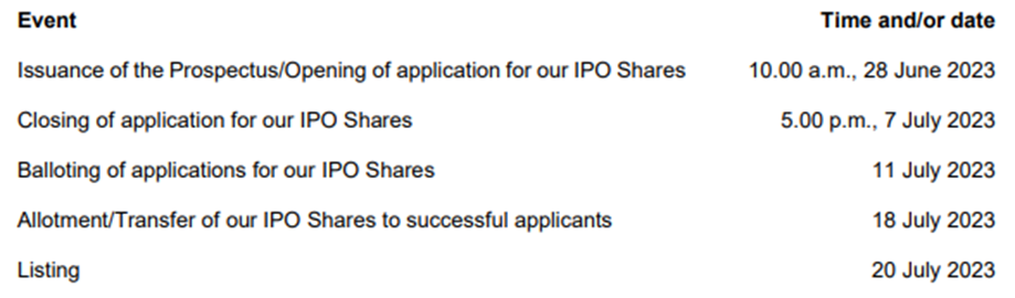 Syarikat ini dijangka akan disenarai di Bursa Malaysia pada 20 Julai 2023 ini.