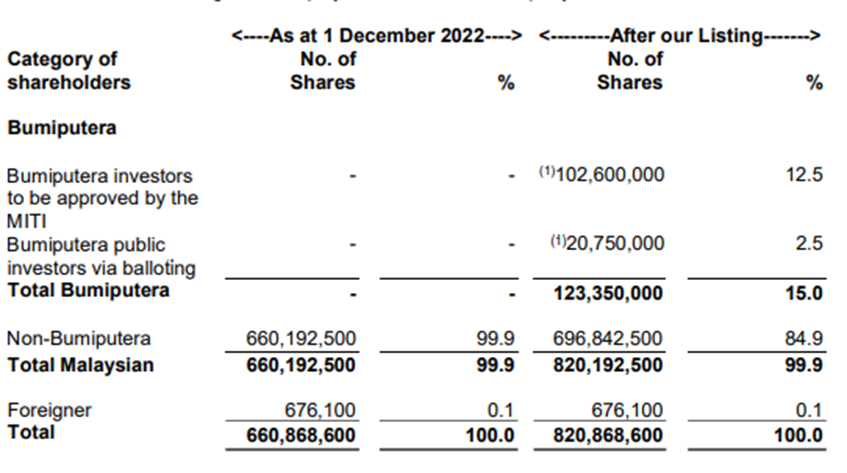 Berikut merupakan struktur syarikat selepas IPO dijalankan.