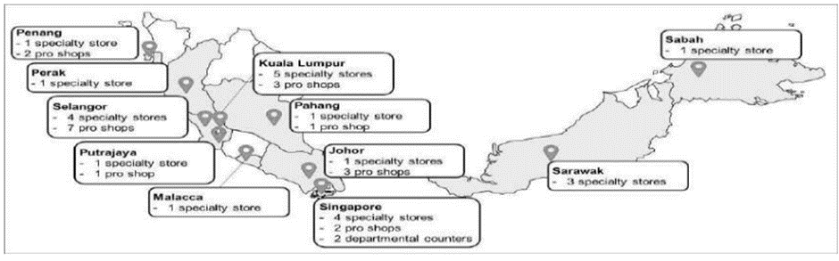 Berikut merupakan bilangan dan juga lokasi kedai yang dimiliki oleh syarikat untuk menjalankan aktiviti mereka :