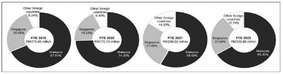 Kebanyakan revenue yang masuk ke dalam syarikat datangnya daripada negara Malaysia diikuti negara Singapura dan selebihnya datang daripada luar negara.