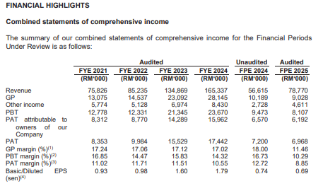 | Tahun Kewangan | Revenue (RM’000) | PAT (RM’000) | PAT Margin |