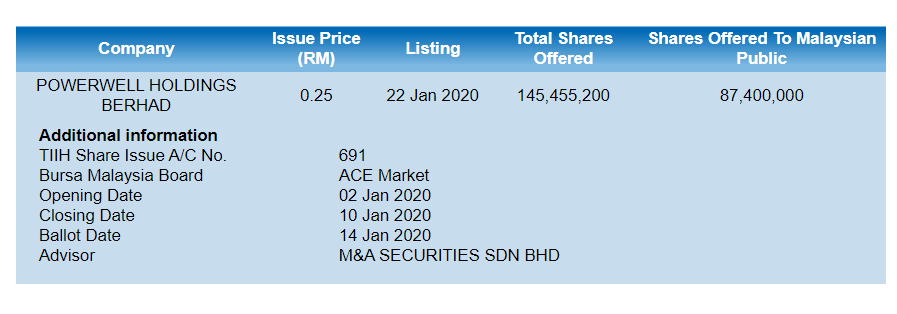 Ini hanya pandangan penulis sahaja, bagi saya POWERWELL HOLDINGS BERHAD adalah satu IPO yang baik dari segi kegunaan IPO itu sendiri. Namun begitu jika dilihat pada REVENUE ia tidak begitu kuat. Bagi saya untuk short term okay sahaja. Untuk mid atau long term agak kurang menarik.