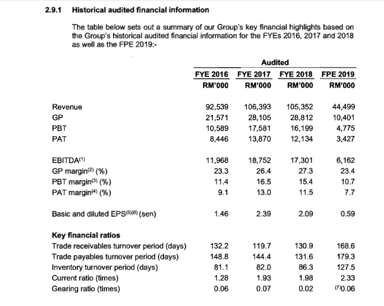 Dibawah ini adalah gambar rajah ringkasan financial information untuk IPO Powerwell Holdings BERHAD 2016 sehingga 2018