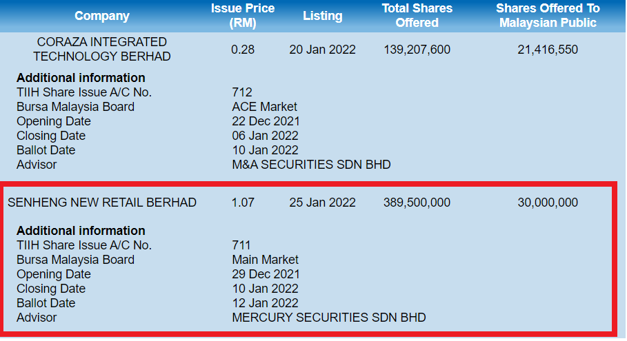 IPO SENHENG NEW RETAIL BERHAD