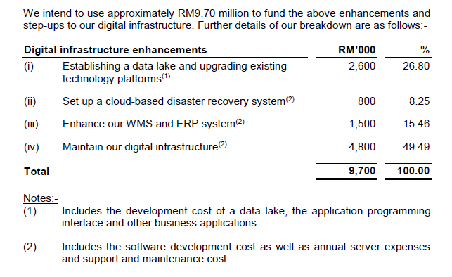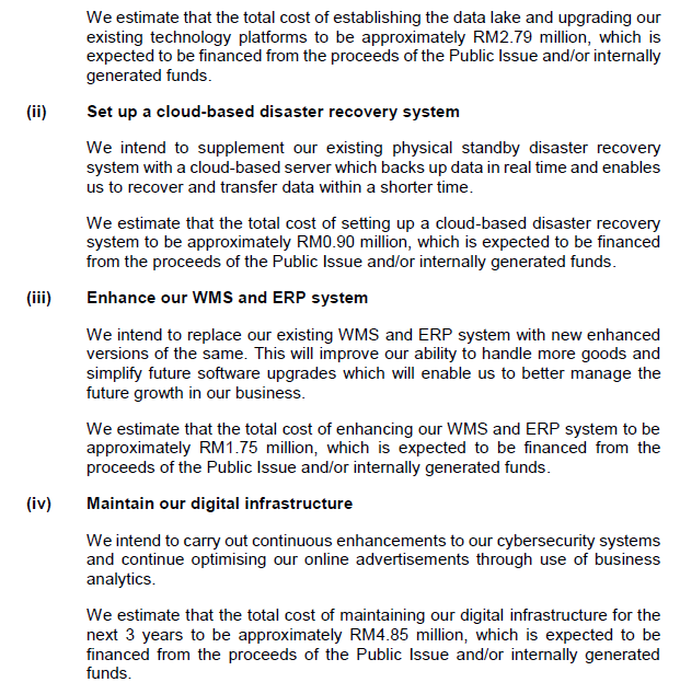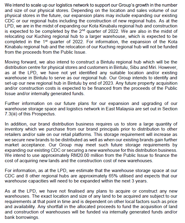 Sebanyak RM20 JUTA digunakan dari kegunaan IPO untuk kembangkan dan tingkatkan versi gudang dan rangkaian logistik