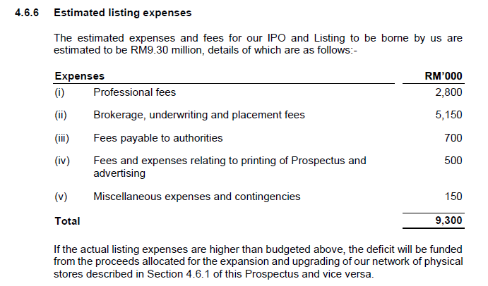 Sebanyak RM9.3 JUTA digunakan dari kegunaan IPO untuk anggaran perbelanjaan penyenaraian