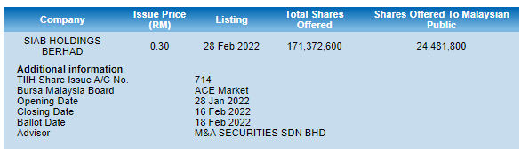 IPO SIAB HOLDINGS BERHAD DI ONLINE BANKING