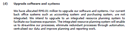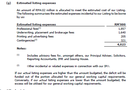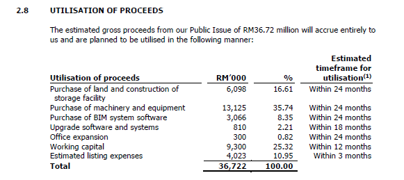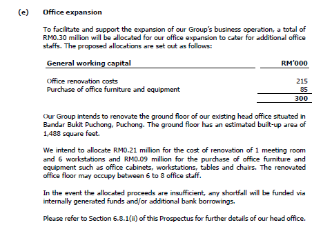 Berdasarkan pembacaan dari Prospectus sebanyak RM36.72 JUTA diperlukan untuk :